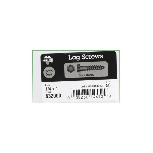 The Hillman Group 832000 1/4 x 1-Inch Stainless Steel Hex Lag Screw, 50-Pack