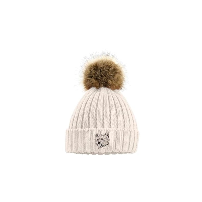 The House Of Dog: Westie West Highland White Terrier Owner Gift. Faux Fur Pom Pom Chunky Knit Super Soft Unisex Embroidered Beanie Hat Oatmeal