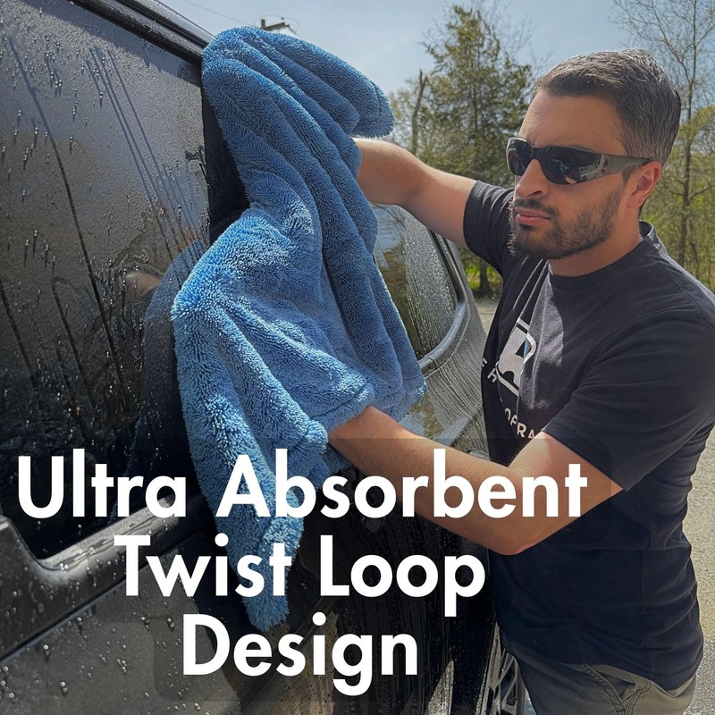 - HOLDS UP TO 2 GALLONS OF WATER WITH MAXIMUM ABSORBENCY: Plush twist loop design allows the towel to hold up to 2 gallons of water, perfect for drying multiple vehicles.
