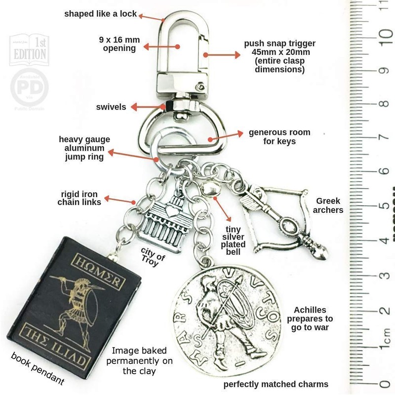 The Iliad Homer Clay Mini Book Bag Purse Backpack Clip Key Chain Ring Carabiner Clasp Trigger Snap