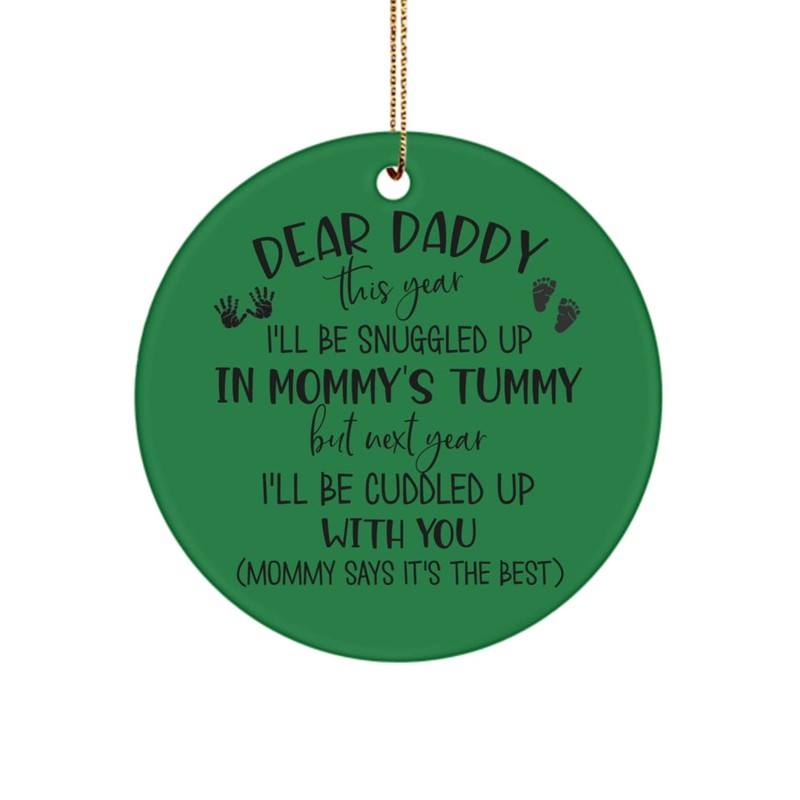 The Improper Mug New Dad Ornament for First Time Daddy Ill Be Snuggled Up in Mommys Tummy Cute Pregnancy Announcement Baby Shower Idea for Him 3 inch Round Ceramic TRE