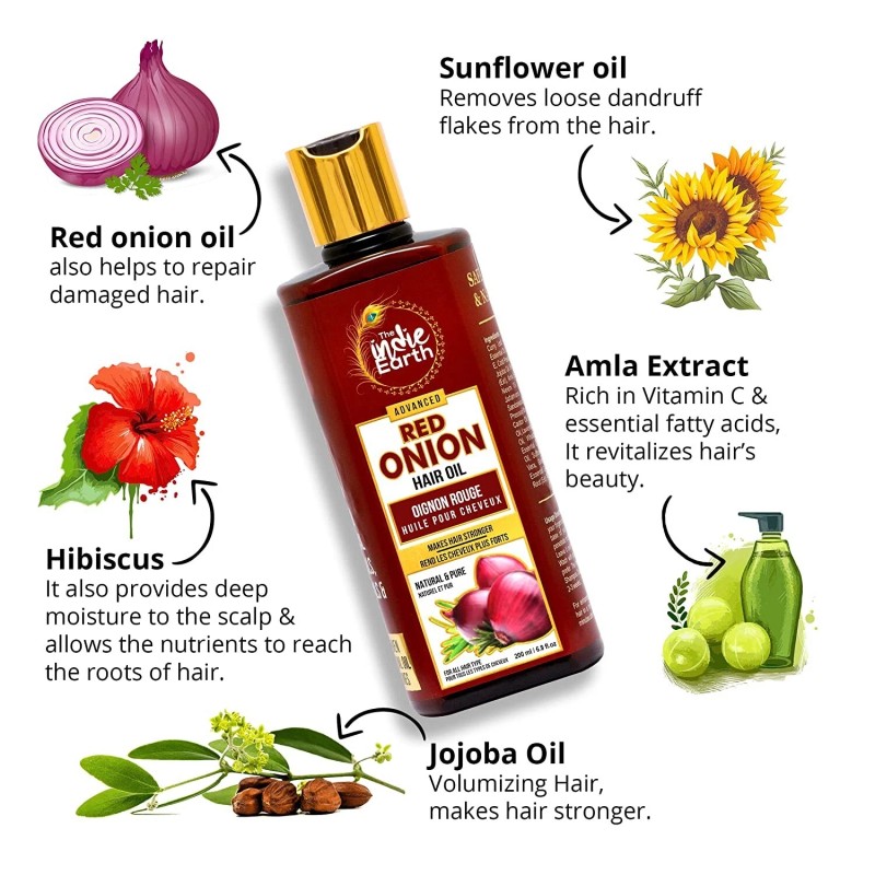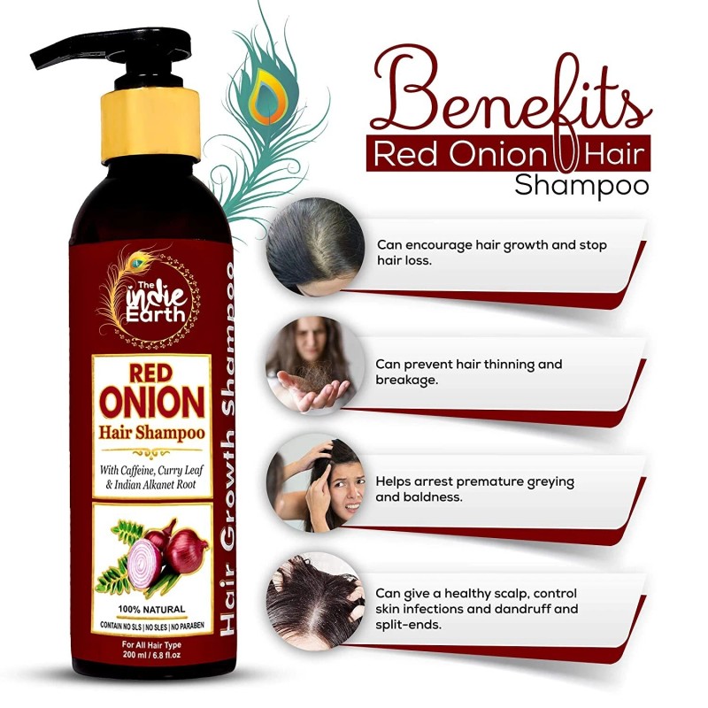 - Red Onion, Curry Leaf & Alkanet Root are traditionally known ingredients used to encourage hair growth and stop hair loss. Onion is a natural source of quercetin, a powerful anti-oxidant that protects the health of our hair, and is also rich in sulphur, known as the beauty mineral, with antiseptic, fungicidal and antibacterial properties that are important for encouraging healthy hair growth and stimulating blood flow.