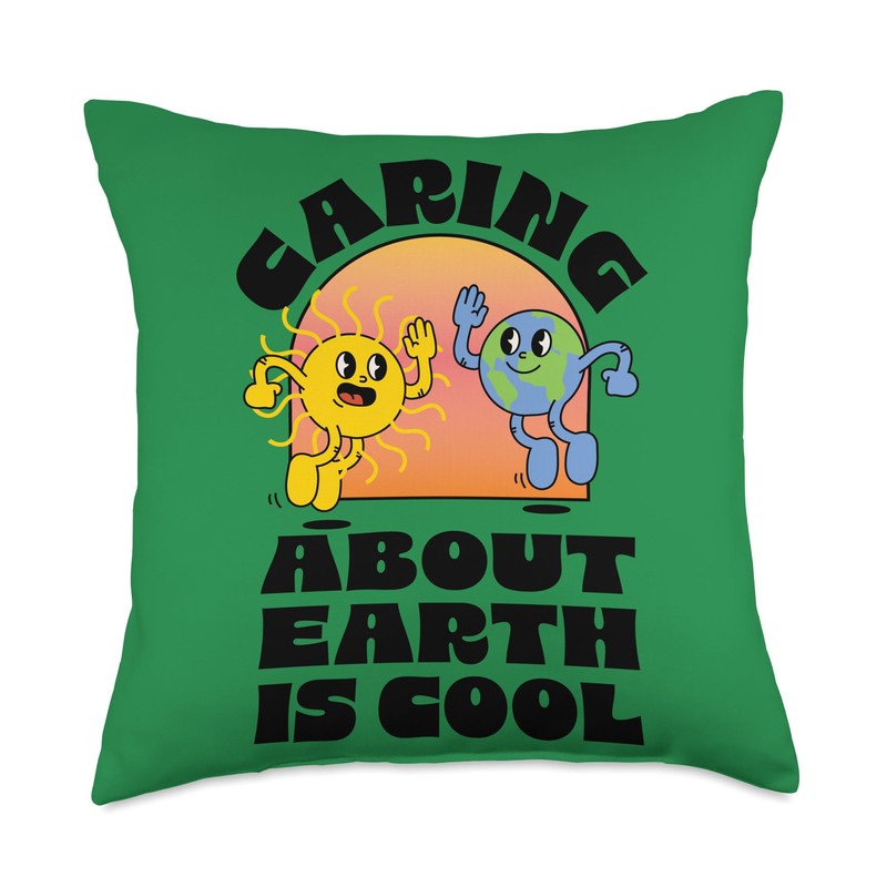 The Instant Message Caring About Earth is Cool Throw Pillow, 18x18, Multicolor
