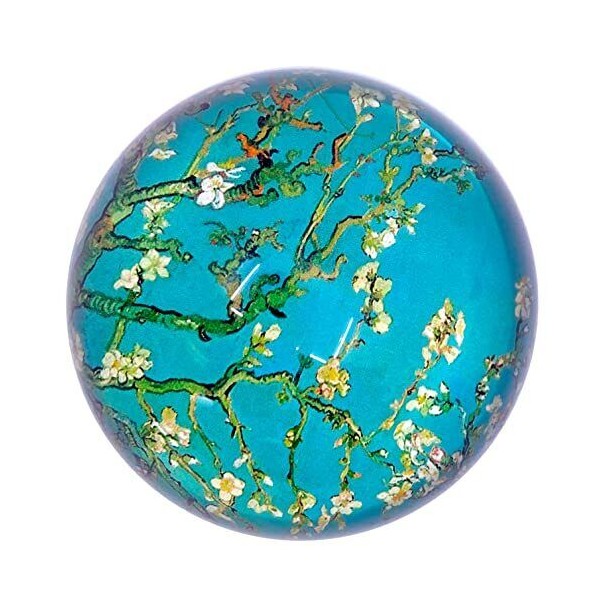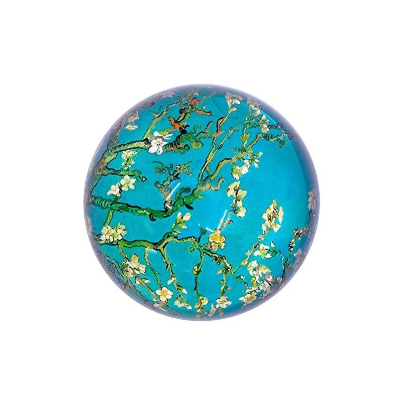 Classic Decorative Monet's Almond Blossom Painting Art Under Glass Paperweight - Made of quality shaped clear glass with artwork underneath and a velvet lined base, showcasing exquisite workmanship with an elegant, low-key luxury feel. This is a beautiful addition to your desk or end table will brighten your space and light up everyone's eyes