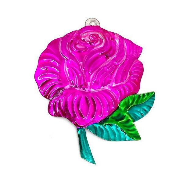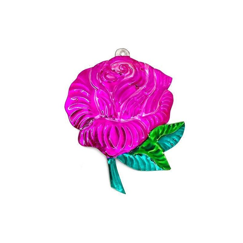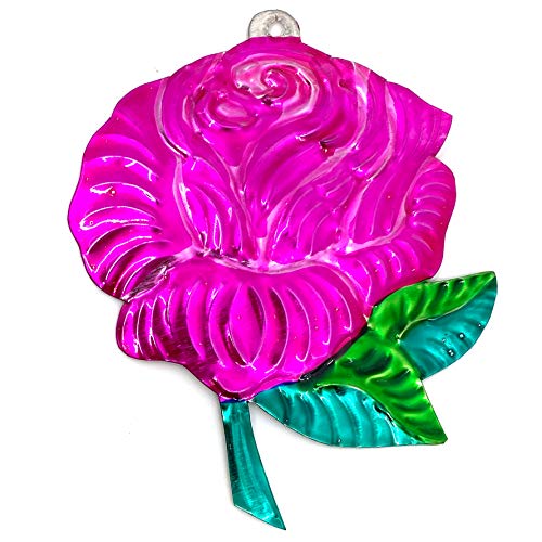 THE JOY TREE Rose Christmas Tree Ornament, Handmade Tin - Mexico