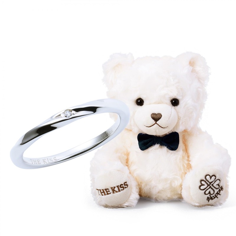 - Product Description: Ring: Ring with a twist to form a three-dimensional form. The center of the ring is set with a diamond meaning "eternal bond". The dainty design with sharp edges gives a mature impression. Original Bear: The KISS original bear "LOVE" and "HAPPY" come together with a chic green and navy checkered ribbon. Pale cream color creates a soft atmosphere. Each name and lucky motif are designed on the bottom of the foot. The gentle and fluffy texture of the item makes you want to cuddle with it