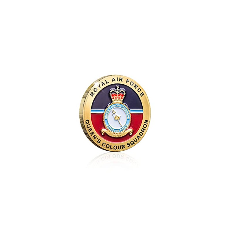 - This gold-plated Royal Air Force challenge coin features the Queens Colour Squadron badge, set on the RAF colours, with the RAF logo on the reverse