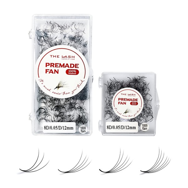 THE LASH SUPPLY THE LASH SUPPLY 1000fans 3D 4D 5D 6D 7D 8D 10D 12D 14D Wispy Premade Fan Eyelashes, C/CC/D Curl, 8-20mm Length, 0.03/0.05/0.07 Thickness, Promade Loose Eyelash Extension Fans, Mixed Length Pack