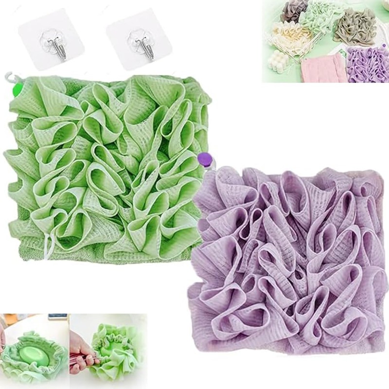 The Leeffa Soft Loofah and Washcloth, 2-in-1 Shower Loofah, Loufee Loofah Washcloth, Shower Loofah with Drawstring, Exfoliating Bath Sponge - Gently Exfoliates Dead Skin