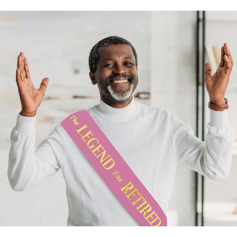 - PREMIUM QUALITY – Our retired sashes are made of high quality, smooth satin fabric with gold foil stamped letters that say The Legend Has Retired