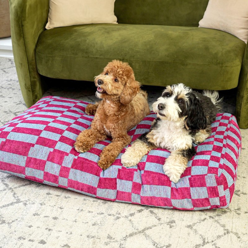 THE LICKER STORE DBD3001C-XL Mabel 49.5" x 31.5" Designer Modern Ultra Soft Reversible Plush Rectangular Pet Bed with Washable Cover, Blueberry Check