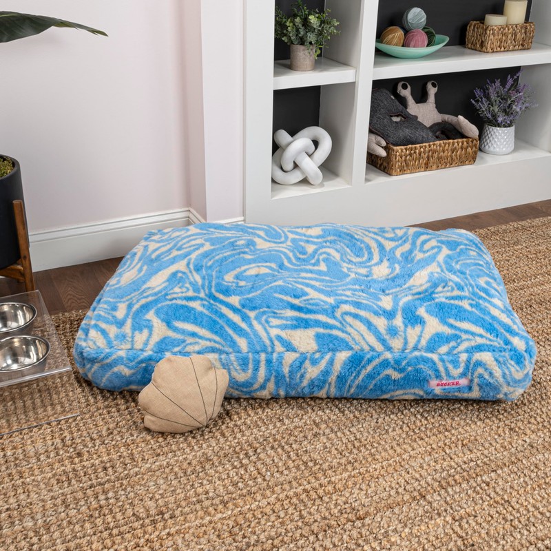 THE LICKER STORE DBD3001G-M Mabel 35" x 23" Designer Modern Ultra Soft Reversible Plush Rectangular Pet Bed with Washable Cover, Blue Lemonade Twist
