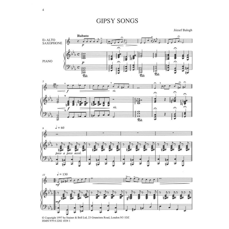- for Eb Alto Saxophone and Piano (both parts supplied). Sheet Music. Stainer & Bell H388.