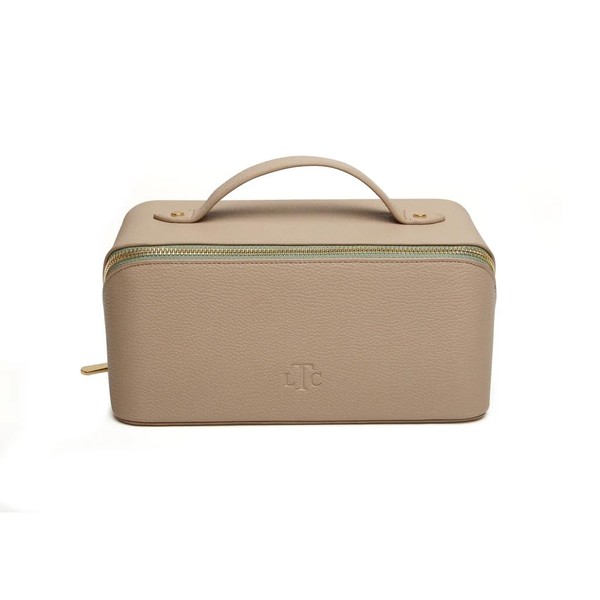 - They boast a sleek zip-around closure, sturdy top handles, and are crafted from high-quality pebbled vegan leather with an elegant two-tone finish. The thoughtfully designed interior features ample space, complete with dividers and pockets, ensuring all your essentials are secure and orderly, making them the perfect companion for your beauty needs on the go.