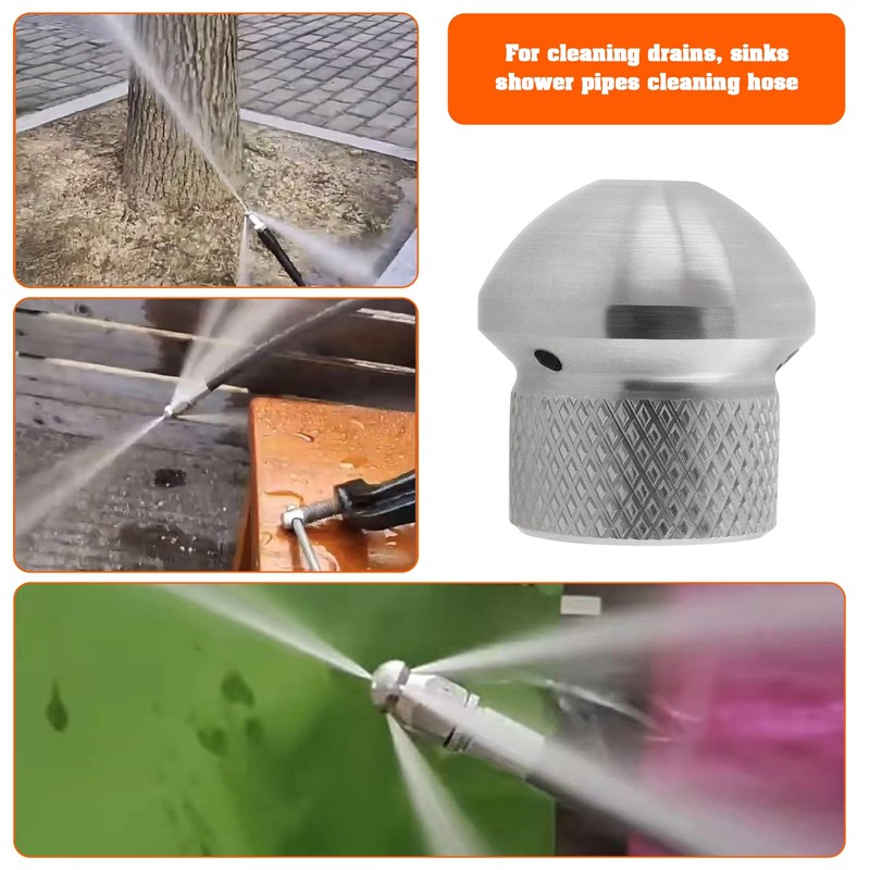 The Lord of the Tools 1pc 1/8" Pipe Cleaning Nozzle Stainless Steel 4 Holes Pipe Cleaning Hoses Nozzle for Cleaning Drain Pipes Sinks Showers Silver