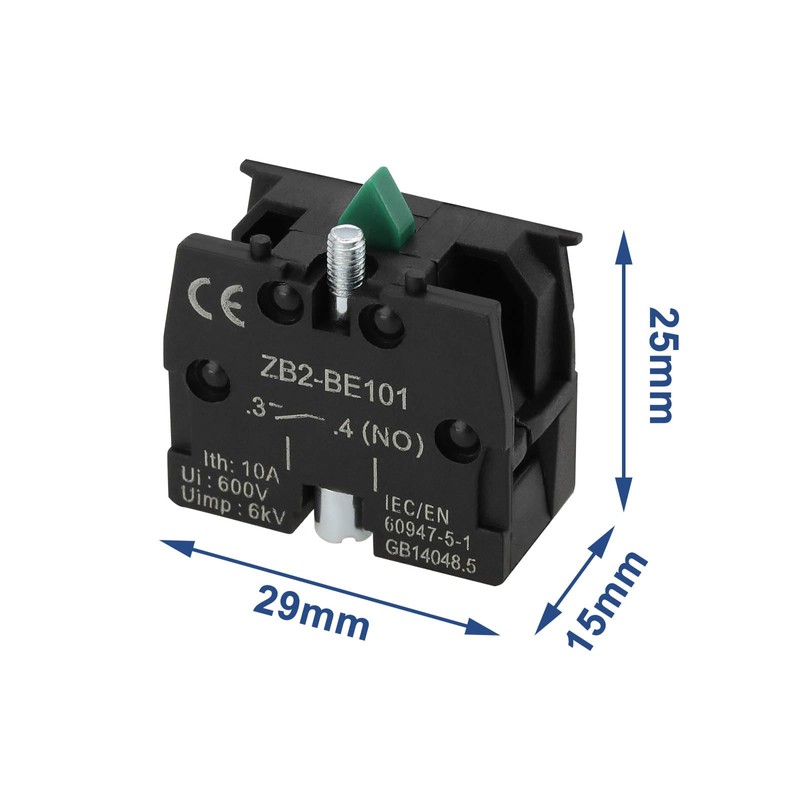 - The model number of the silver contact block: ZB2-BE101. It is a replacement for all models XB2 button and XB2 switch.