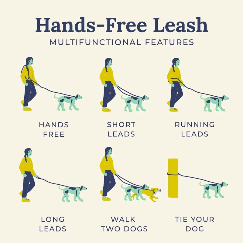 - Featuring four adjustable O-rings allow for a variety of hands-free ways to wear the leash