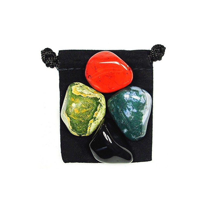The Magic Is In You Inner Strength Tumbled Crystal Healing Set with Pouch & Description Card - Black Onyx, Jasper, Moss Agate, & Rhyolite
