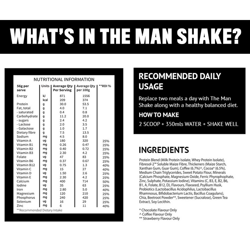 Each 840g bag of The Man Shake contains 15 individual shakes.