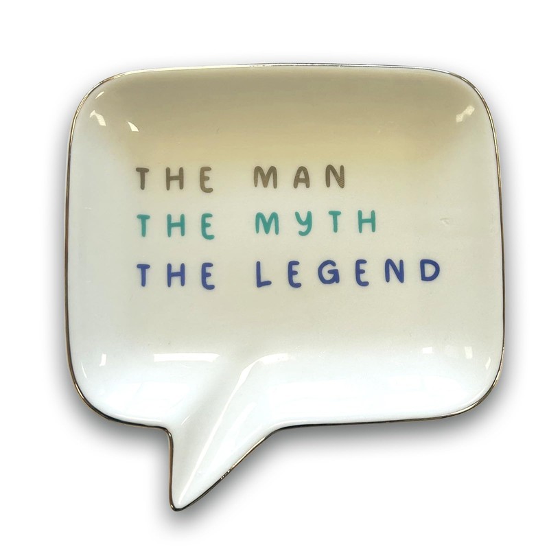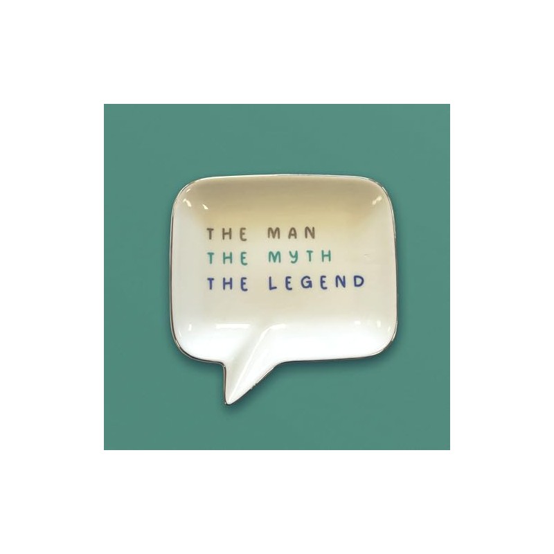 Details: This charming ceramic trinket tray, designed by Love Kate's, features a whimsical speech bubble design with the phrase "The Man The Myth The Legend." It’s a thoughtful keepsake that blends style and sentiment, perfect for holding his everyday essentials and showing just how legendary he really is.