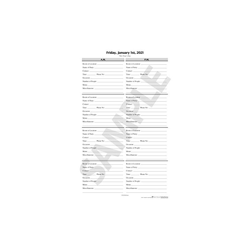 - Includes annual, monthly, and holiday calendars and ample room location, contact, menu, and party set-up information