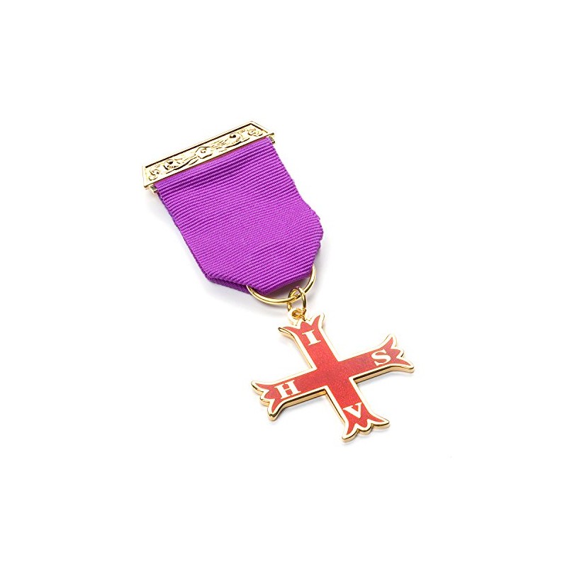 - Premium Design: Elevate your regalia with the stunning Red Cross of Constantine Breast Jewel, featuring a captivating purple ribbon. Adorned with four sides, each embossed with a precious Masonic letter, this symbolizes the esteemed values of Freemasonry