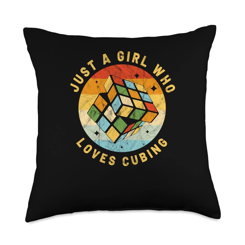 The Melting Cube - Competitive Speed Cubing Merch Just A Girl Who Loves Speed Puzzle Cube Youth Math Throw Pillow, 18x18, Multicolor