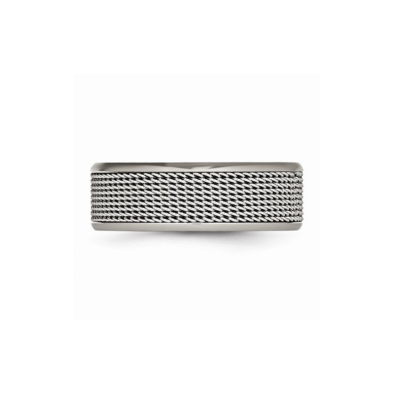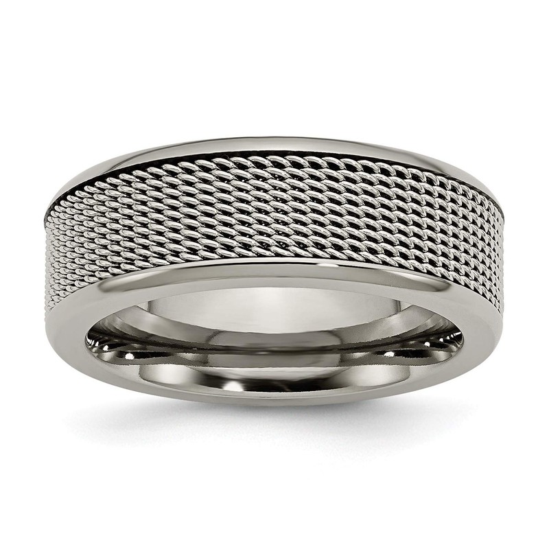 The Men's Jewelry Store Titanium with Base Stainless Steel Mesh Centre 8mm Comfort-Fit Band Size 8.5