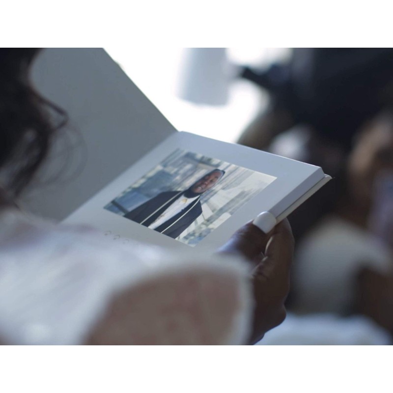 The Motion Book are the new way to store and watch your wedding video or wedding slideshow. It’s easy to use and always ready to play! Crafted with care, the LINEN bound wedding video album sure won't disappoint. Open the cover and your videos play automatically on the gorgeous 7″ IPS display. With 4GB of memory, it’s always ready to play your videos with a 1500mAh rechargeable battery that lasts about 2 hours when playing videos and over 9 months on standby. Charge and upload video files to The Motion Books by using the provided micro USB cable. The timeless linen design elevates the visual and tactile experience of The Motion Books and helps it stand out on your bookshelf or your coffee table. Additionally, it’s a perfect gift idea for newlyweds, parents, grandparents and friends. Simply load your wedding video on the device before gifting it to them – they will be taken back by this modern and new family album.