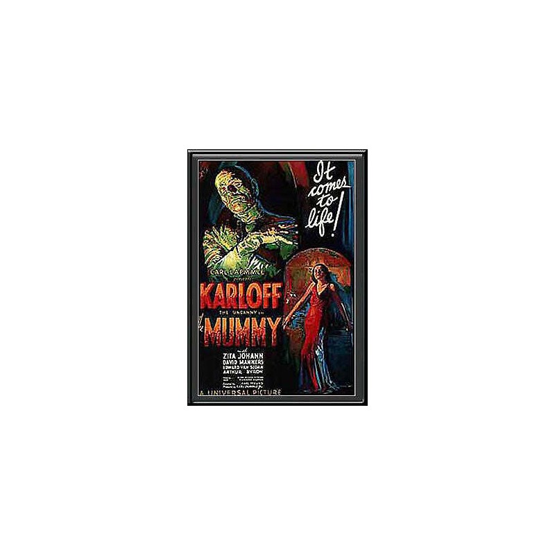 Colorfully illustrated 'Lobby Card' from the classic 1932 Horror film featuring the man who started it all...Boris Karloff. Framed picture with special lighting effects from Electric Art. Green L.E.D. lights in Mummy's eyes. Red L.E.D.s around tombstone.