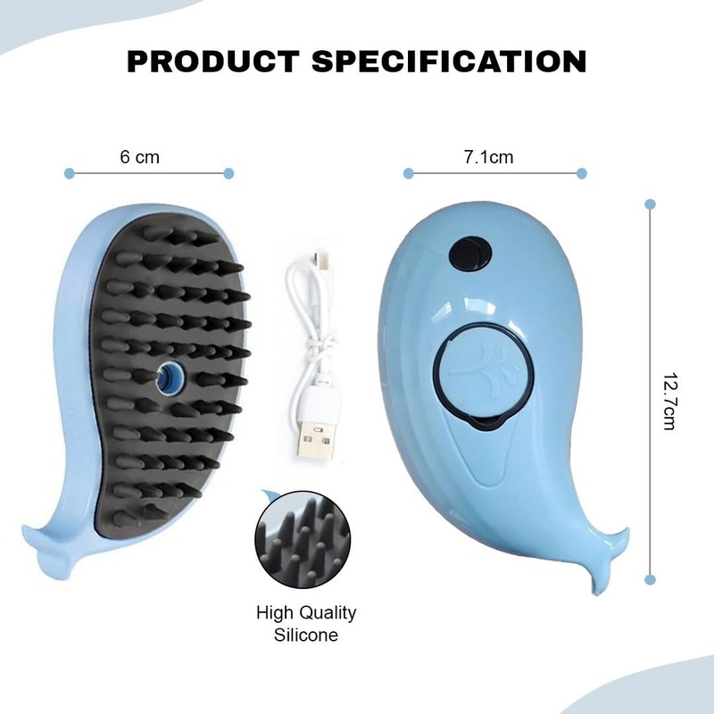 The Musk 3-in-1 Silicone Cat Steam Hair Brush - USB Rechargeable Cat Grooming Tool - Deshedding Brush - Ideal for All Pets - Blue