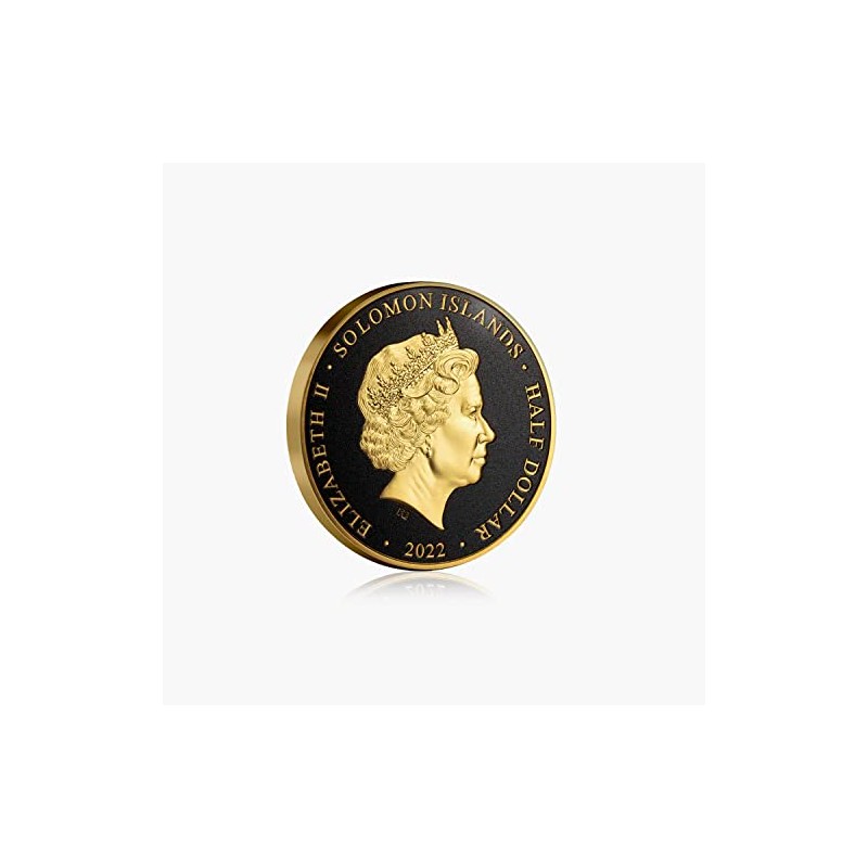 - Country of Issue: Solomon Islands, Year of Issue: 2022, Face Value: Half Dollar, Base Metal: Multiple, Plating: 24 Carat Gold, Diameter: 45 x 30 mm, Weight: 38 g, Edition Limit: 15,000
