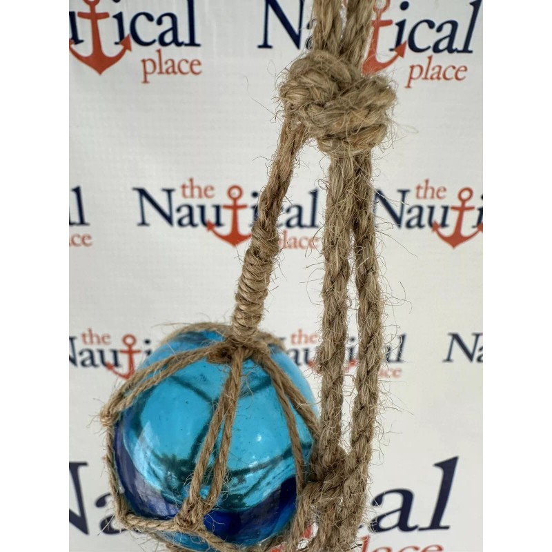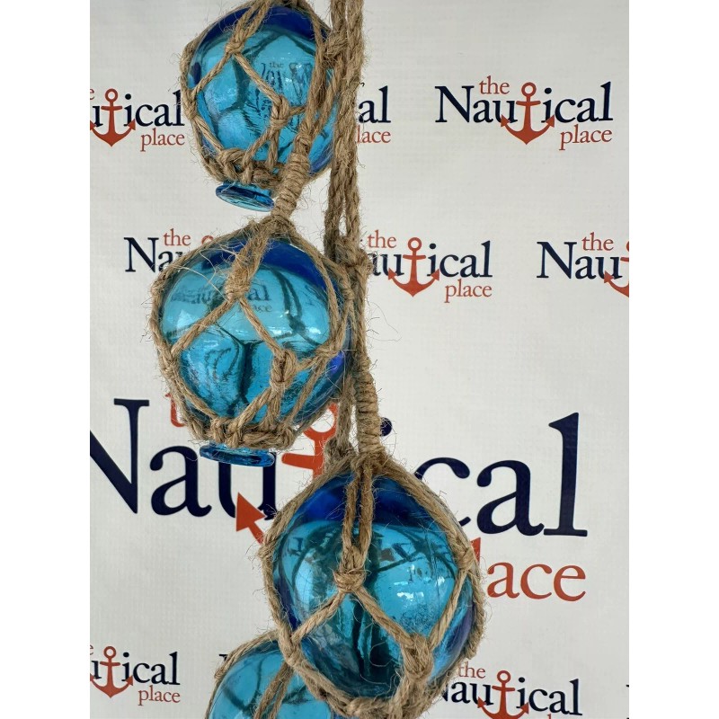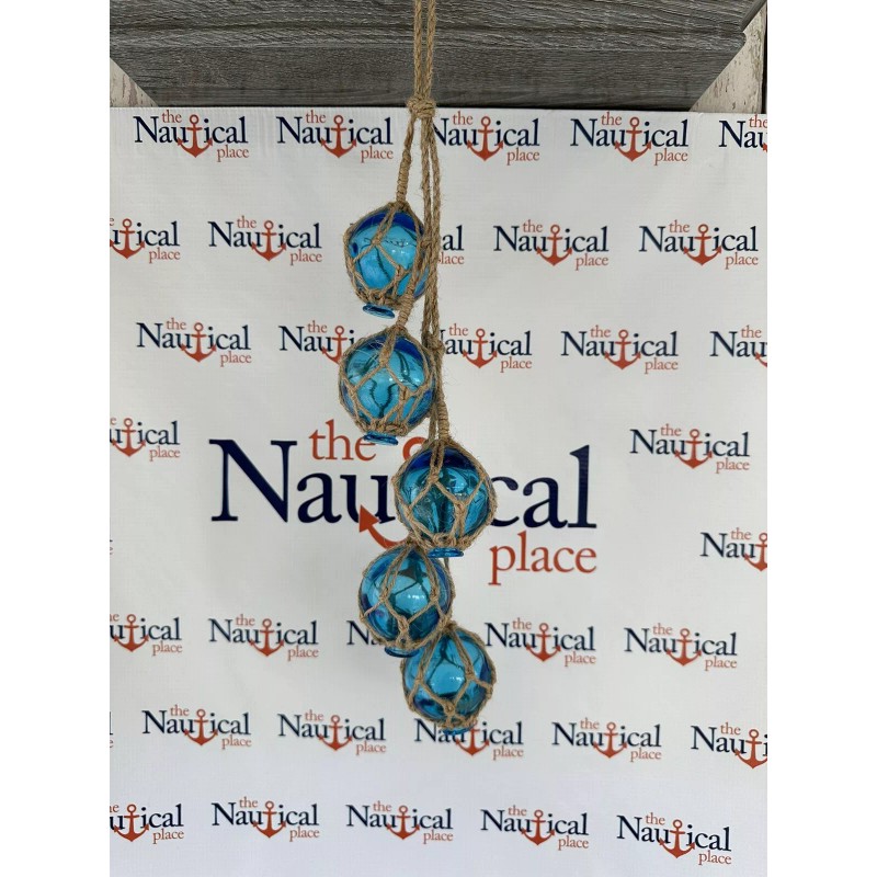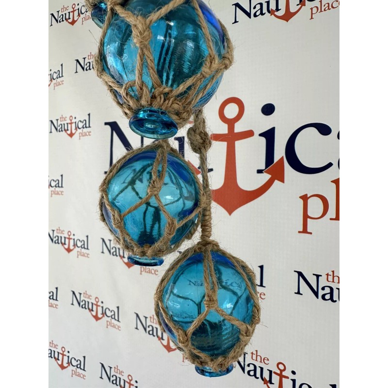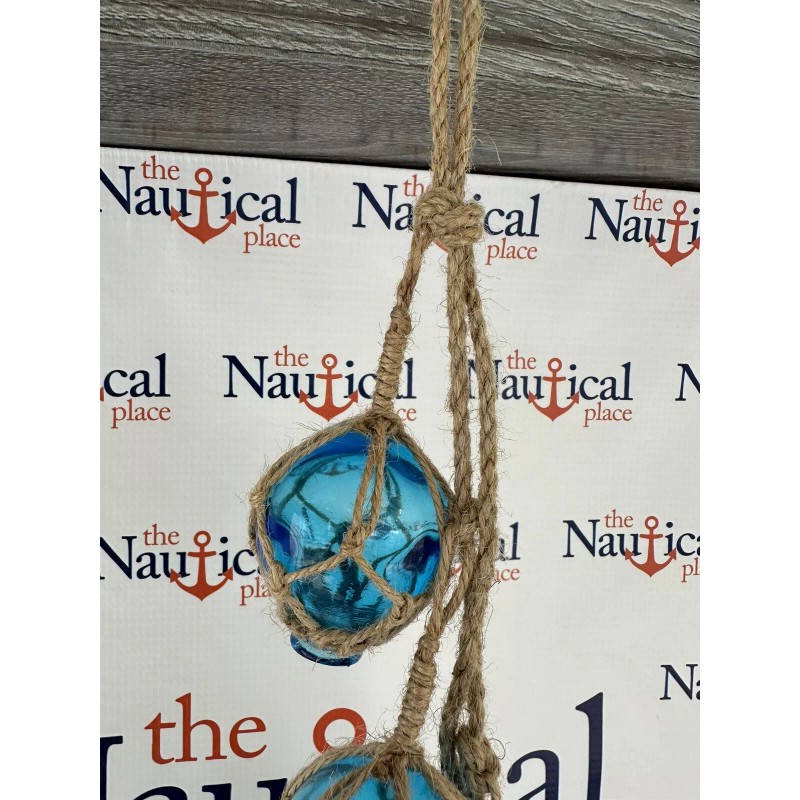 The Nautical Place 5 x 2" Aqua Glass Fishing Floats On Rope, Nautical Fish Net Decor, Light Blue