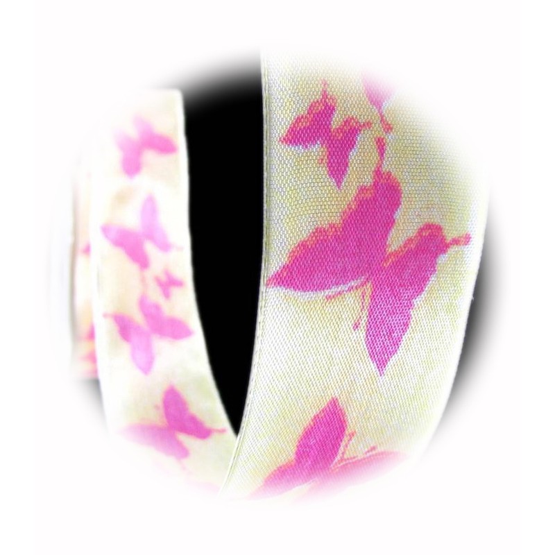 The New 5 Yards Pink Butterfly Butterflies Yellow Wired Ribbon 1 1/2" W Perfect for Crafting, Gift Wrapping, and Decorating Ribb1w01107