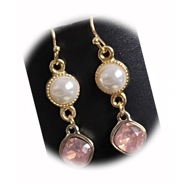 The New Gold Tone, Pearl and Pink Rhinestone Dangle Earrings Ideal for Creating Unique Accessories and Decorations KATE1O01894