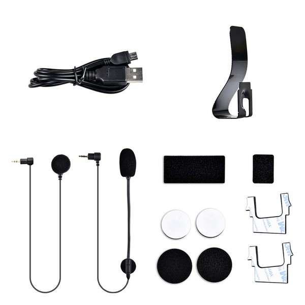 Fodsports The New Version FX8 Accessories, Motorcycle Helmet Bluetooth Headset Intercom Communication System Kit(Iron Clip/Hard Soft Mic/USB Charge Cable/2 Rubber Pad/8 Adhesive Pads Stickers)