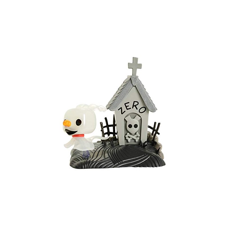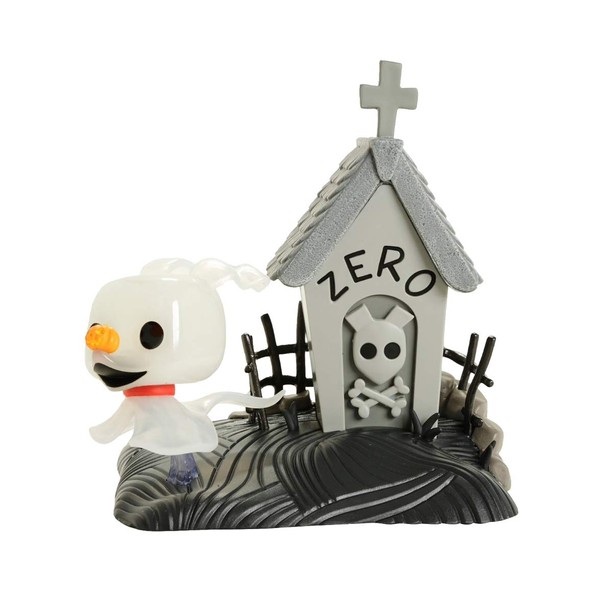 Now immortalized in Vinyl Zero in Doghouse Zero is Jack's ghost dog and a favorite character from Tim Burton's The Nightmare Before Christmas. Zero has a glowing pumpkin nose, an obvious Halloween pun of Rudolph the Reindeer with a red nose. Zero helps guide his master Jack Skellington through the fog on Christmas Eve. This Pop features Zero with his dog house. Measures 7" W x 6" H.
