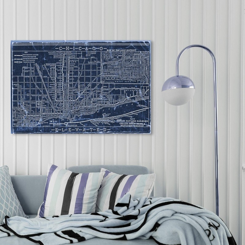The Oliver Gal Artist Maps and Flags Wall Art Canvas Prints 'Chicago Railroad Blueprint Map', Navy Blue, White, 45" x 30"