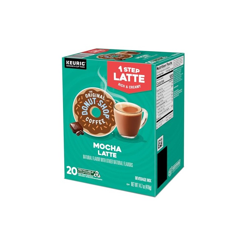 Nothing beats a perfectly made latte. So rich. So creamy. And now C so easy! The Original Donut Shop One step latte K-Cup pods are filled with Columbian coffee, natural flavoring, and real dairy C all in one! So you can enjoy the crave-able creaminess of your favorite latte, made right when you want it, at the touch of a button.A mouthwatering mocha masterpiece in your mug. Super smooth, crave-ably creamy, and full of rich, chocolatey flavor. Certified Orthodox Union Kosher. Compatible with all Keurig Single Serve coffee makers. Recyclable K-Cup pods, check locally, not recycled in all communities.