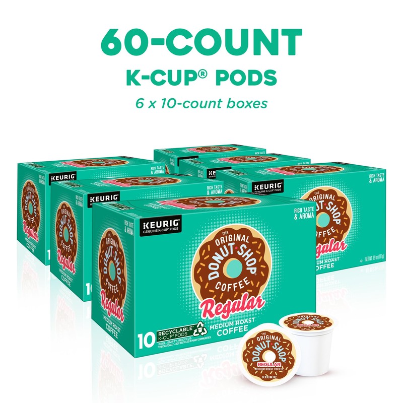 The Original Donut Shop The Original Donut Shop Regular, Keurig Single Serve K-Cup Pods, Medium Roast Coffee, 60 Count, (6 Packs of 10)
