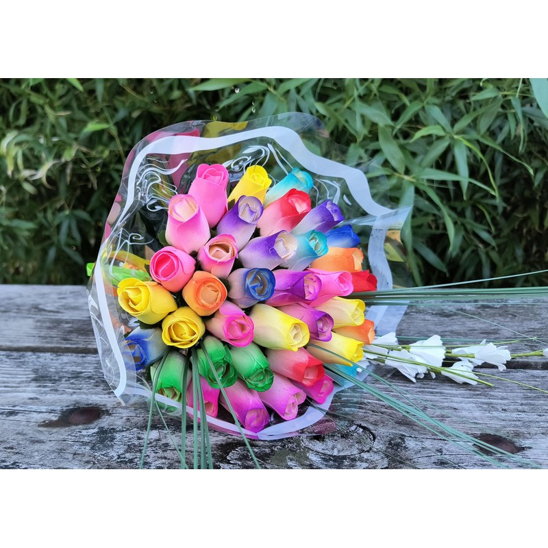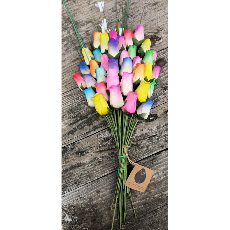 The Original Wooden Rose Spring Easter Flower Bouquet Closed Bud (3 Dozen)