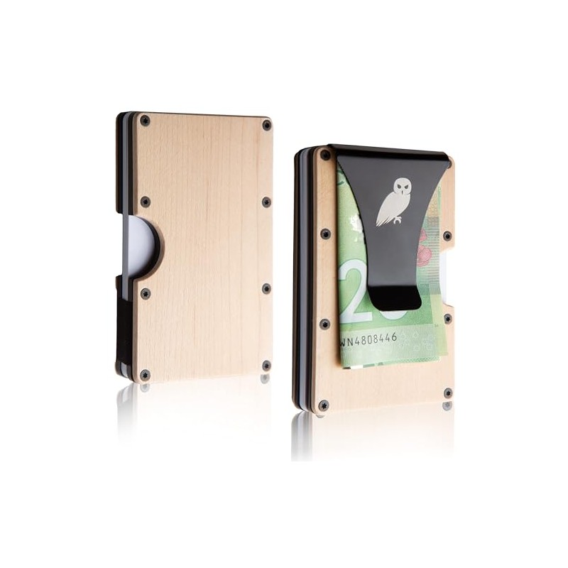 The Owl Wallet | Authentic Minimalist Maple Wood RFID Blocking Mens Wallet with Money Clip