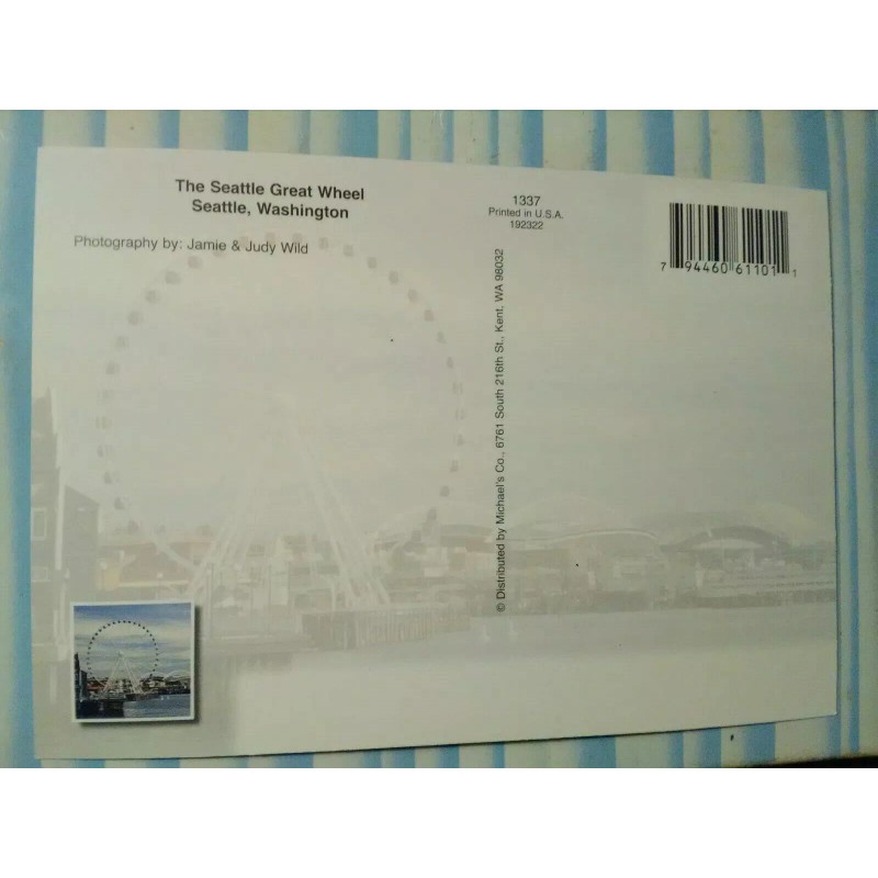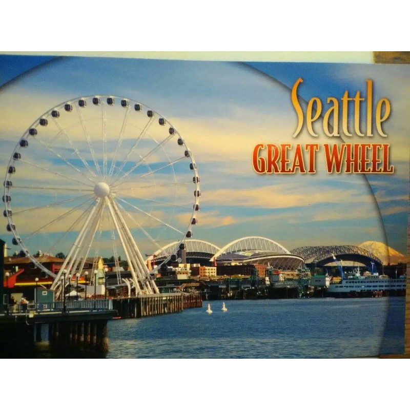 I  AM  OFFERING  A TRUE BLUE  BEAUTIFUL  PHOTO POST CARD  FROM  SEATTLE   AROUND AFTERNOON   HOURS  LOCATED  IN  THE CENTER  IS  THE  GREAT WHEEL  PIER # 57  AND THE VIEW OF  THE  WATERFRONT  GOING  DOWN  TO  THE COLEMAN FERRY DOCK PIER # 52  WITH    A GLOWING VIEW OF THE COLEMAN FERRY TERMINAL AND OUR STATE FERRY  SO BEAUTIFUL  THE GREAT WHEEL  ON THE SEATTLE WATERFRONT   A VIEW OF MT RAINIER ALSO IN THE BACK GROUND..  PHOTOGRAPHER BY  JAMES & JUDY WILD   PUB  BY  MICHAEL'S CO DIST BY THE POST CARD CO. KENT WA.