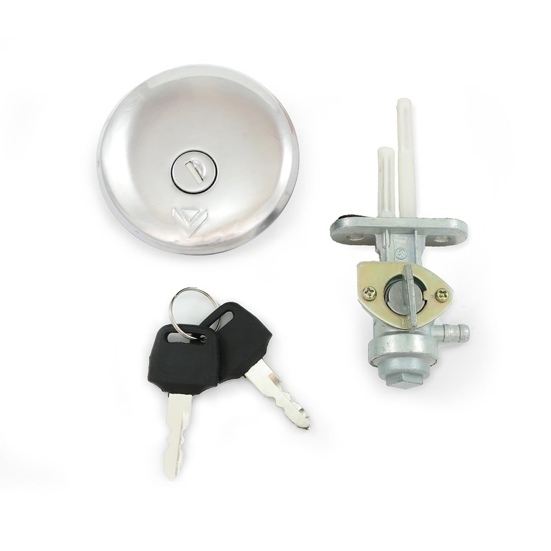 Includes chrome locking gas cap with keys and a petcock for use with 1/4" fuel line.