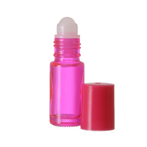 The Parfumerie 5 ml. Glass Roll on Bottle. Perfect for Essential Oils Aromatherapy, Perfume and Cologne. Plastic Roller. Pipettes Included (144 Bottles, Pink)