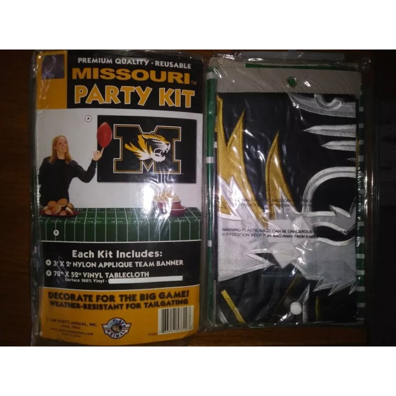 THE PARTY ANIMAL Tailgate Party Kit UNIVERSITY OF MISSOURI TIGERS Party Animal FLAG & Tablecloth