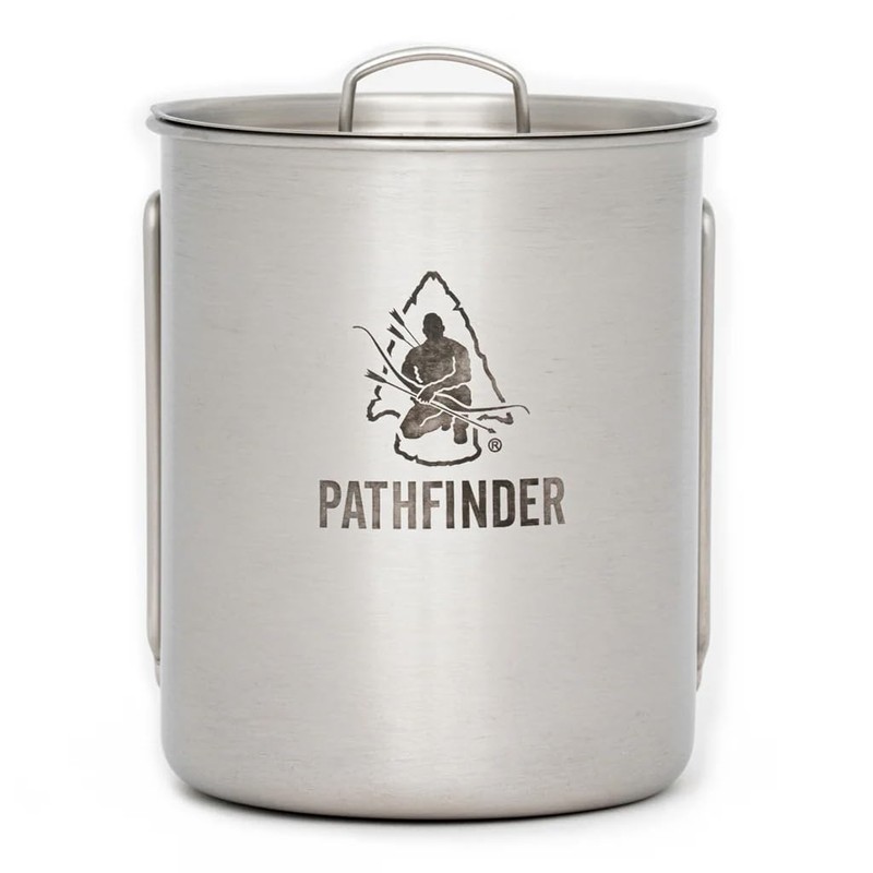 The Pathfinder School Stainless Steel 32oz Water Bottle, Cup with Bat Wing Handles, and Stove Set
