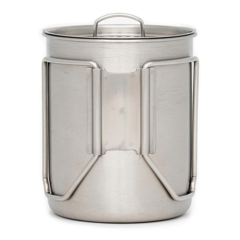 - Set Includes: 32oz Stainless Steel Wide Mouth Bottle with Flat Cap; 25oz Stainless Steel Cup with HEAVY gauge "bat wing" handles; A Stainless Steel Cup Lid with straining holes; Bottle Stove
