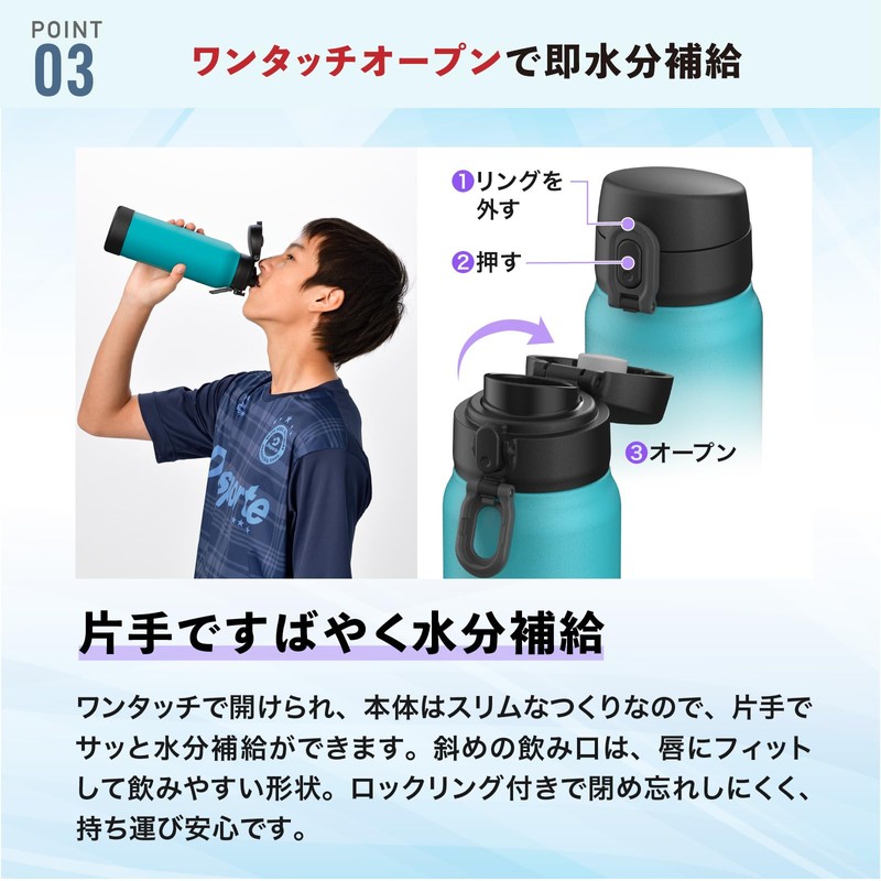 - The stainless steel vacuum insulated construction effectively blocks outside temperatures and provides excellent heat and cold retention. The inner bottle is made of highly corrosion-resistant stainless steel, so it can be used with sports drinks. Comes with a locking ring that makes it easy to see the lock and release. Simply open the lid with a single touch of a button. The diameter of the bottle is about 1.5 inches (3.8 cm), making it easy to fill with drinks and ice. The mouth is made of resin, so it is gentle on the mouth. Comes with a bottom cover to protect the bottom of the bottle from bumps and scratches. Lightweight type (approx. 0.3 kg) for easy carrying. The main unit is fully washable