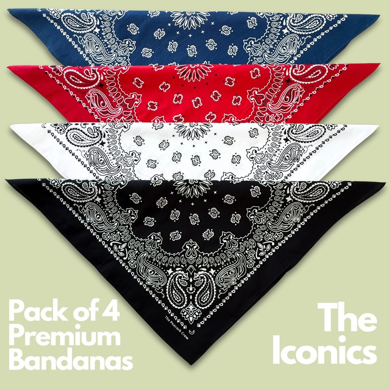 - 4 Pack of Iconic Colors : The Iconics Set features four timeless bandanas in Black, White, Red, and Navy Blue. Designed with a traditional paisley pattern, this set is perfect for men and women who love versatile accessories that complement both casual and formal outfits